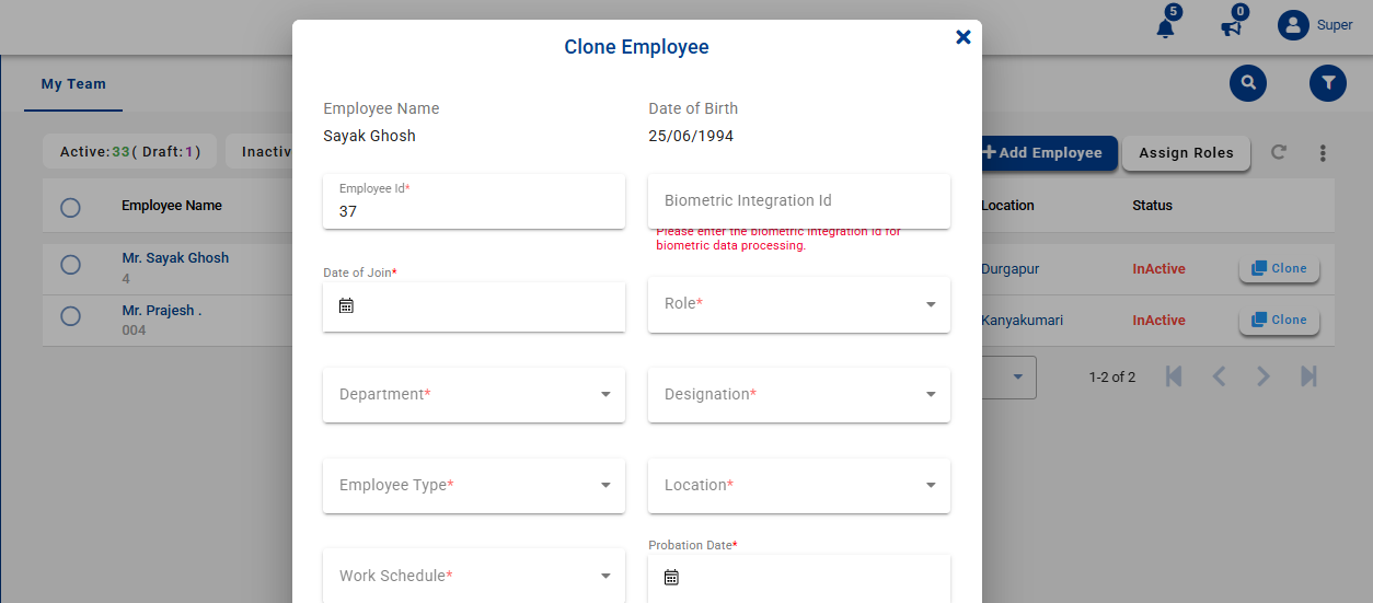 Fig: Clone Employees