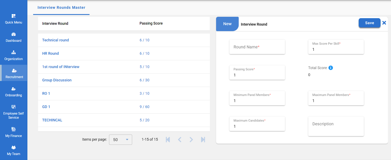 The saved interview round will appear as an option when creating a new job requisition in the job posting.