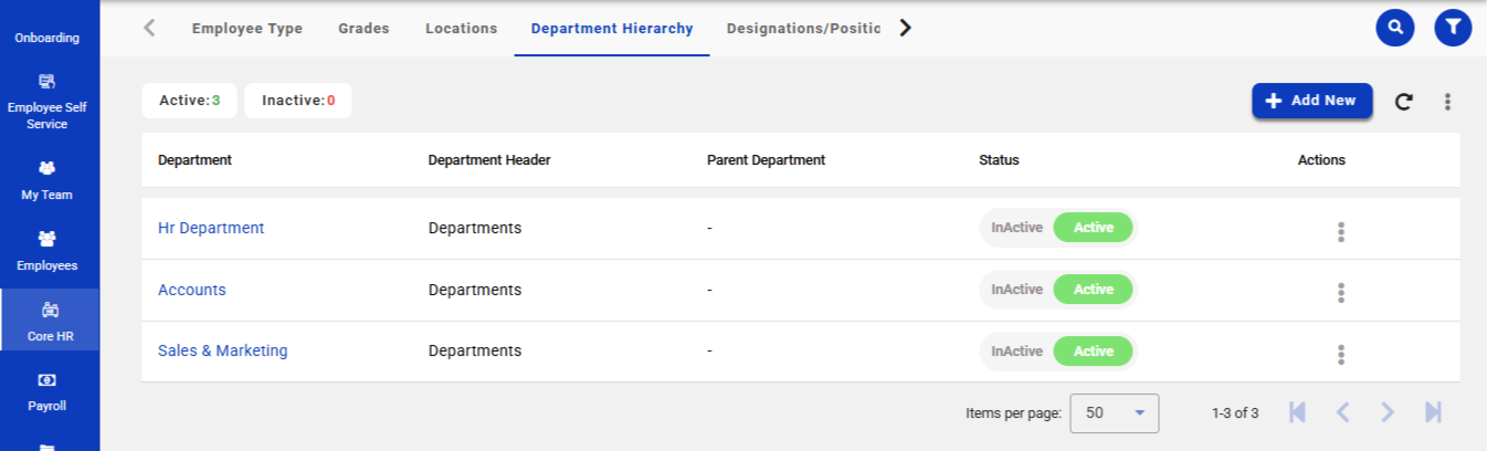 - In Org Structure, the following components are configured to ensure efficient human resource management and align with business objectives: Business Costs/Cost Centers, Department Hierarchy, Designations/Positions, Grade, Location, Work Schedule.