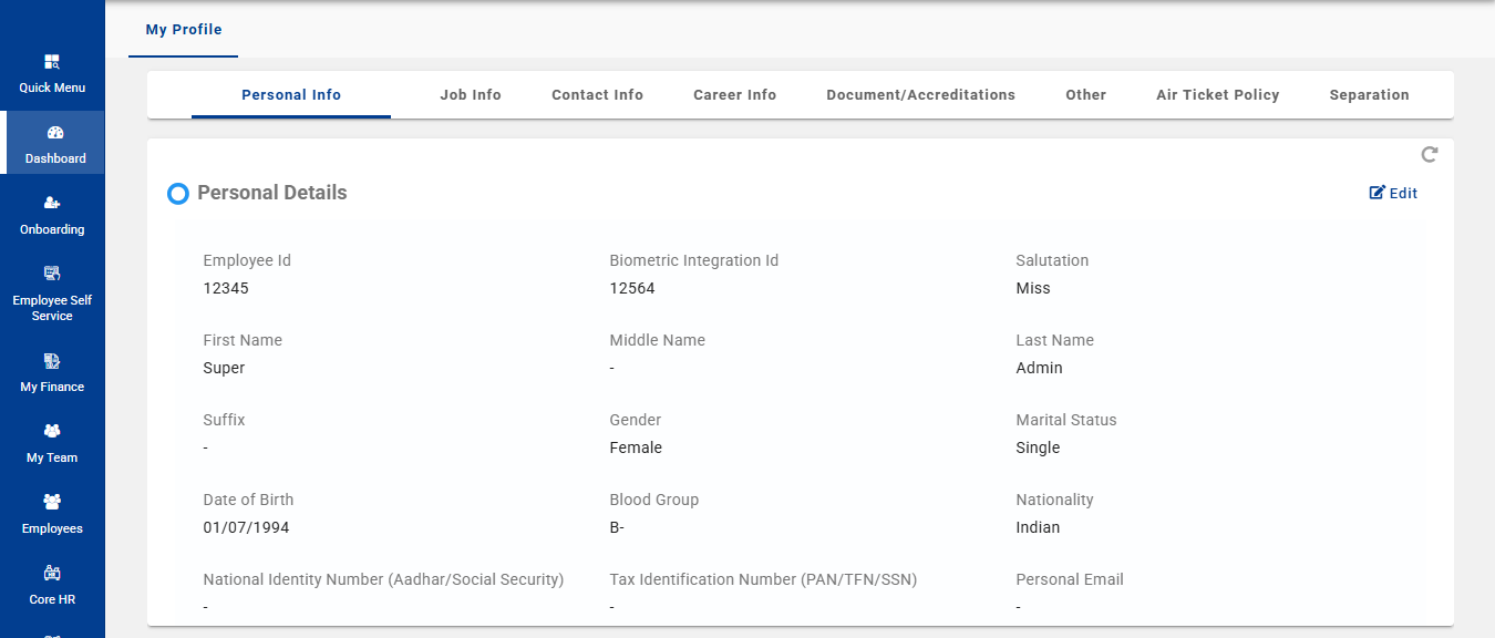Employee Self Service → My Profile Click on the avatar icon at the top right corner and select "Profile" from the dropdown My Profile in the ESS portal provides employees with access to their personal and professional information maintained by the ...