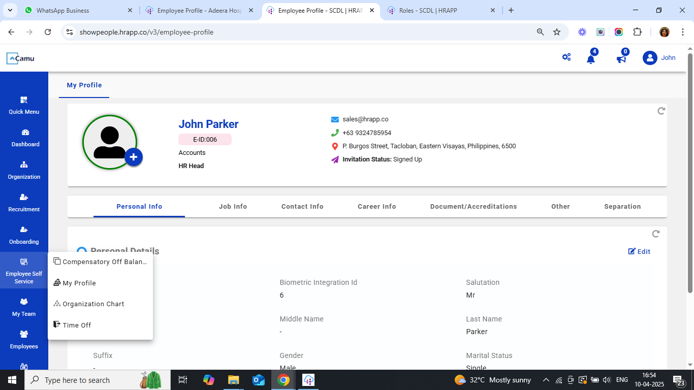 Employee Self Service → My Profile