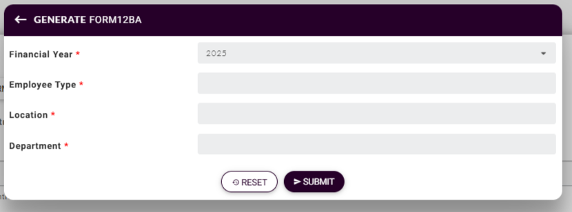 Tax and Statutory Compliances → Compliance Forms → Generate Form 12 BA