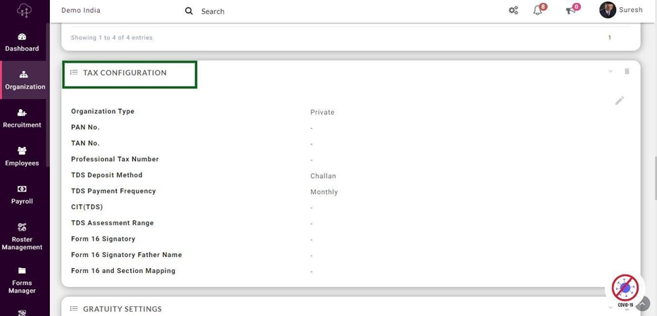 Fill all the tax configuration details of your organization before initiating the Financial Closure.