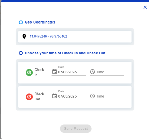 Geo-Coordinates (If enabled in configuration) – Activate GPS to capture latitude and longitude for submitting missed attendance records.