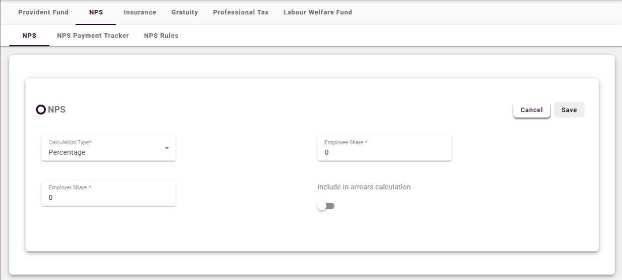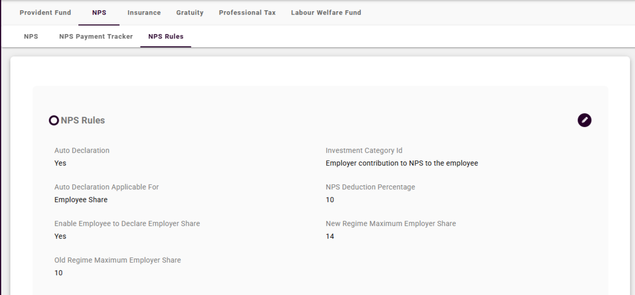 Click the Edit icon in the right hand corner and update the Calculation Type, Employee share and Employer share and Include the NPS calculation in the arrears.