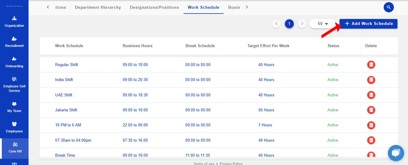 - Navigate to CoreHR → Org Structure → Work Schedule
