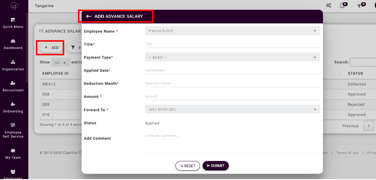 The Advance Salary feature allows Payroll administrators to record and recover salary advances given to the employees. An advance salary is a portion of an employee’s salary paid before the normal payday. The repayment amount can be deducted in one payroll cycle.