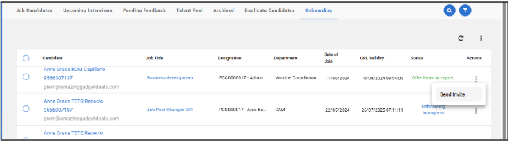 Step 1: Enabling Self-Onboarding for Selected Employees HR/Admin must enable self-onboarding for specific employees by following these steps: Navigate to Onboarding (Menu) → Individuals(Submenu) → Invited Individuals(Tab) Click +Invite Individuals ...
