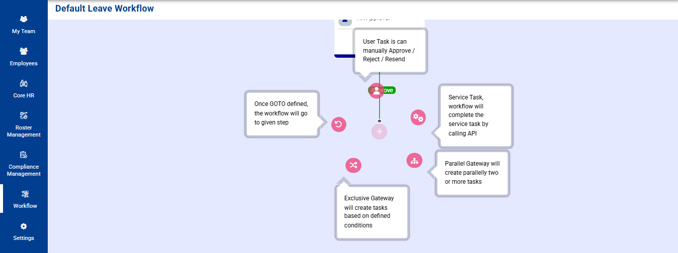 The Workflow Configuration feature allows organizations to define and automate approval processes for various HR functions. This ensures that requests follow the appropriate hierarchy, reducing manual intervention and streamlining operations.