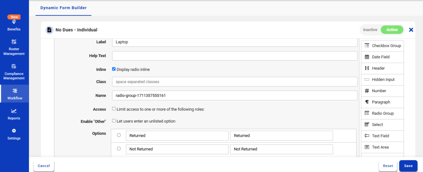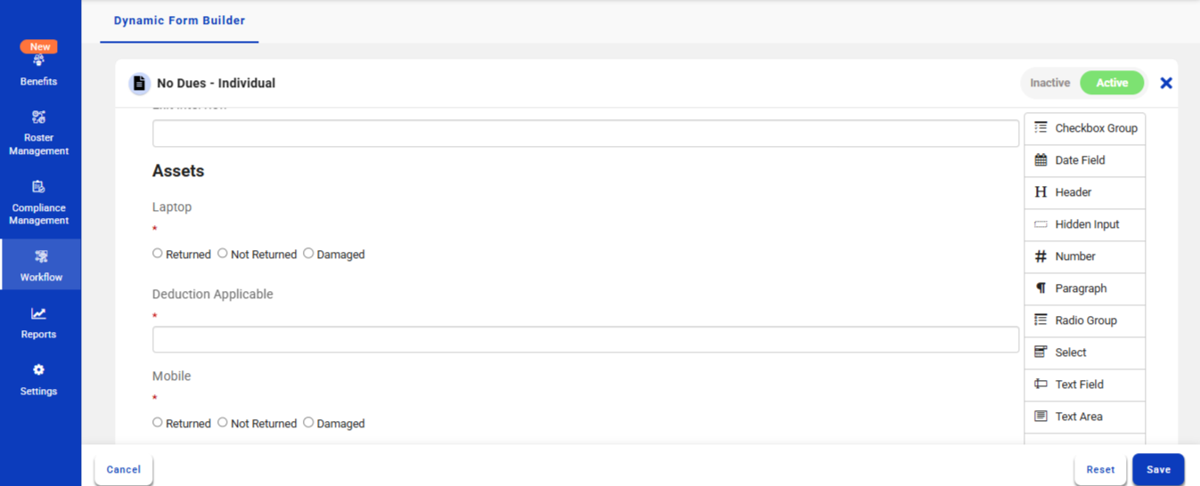 The created No Dues questionnaire will be displayed in the Resignation workflow.