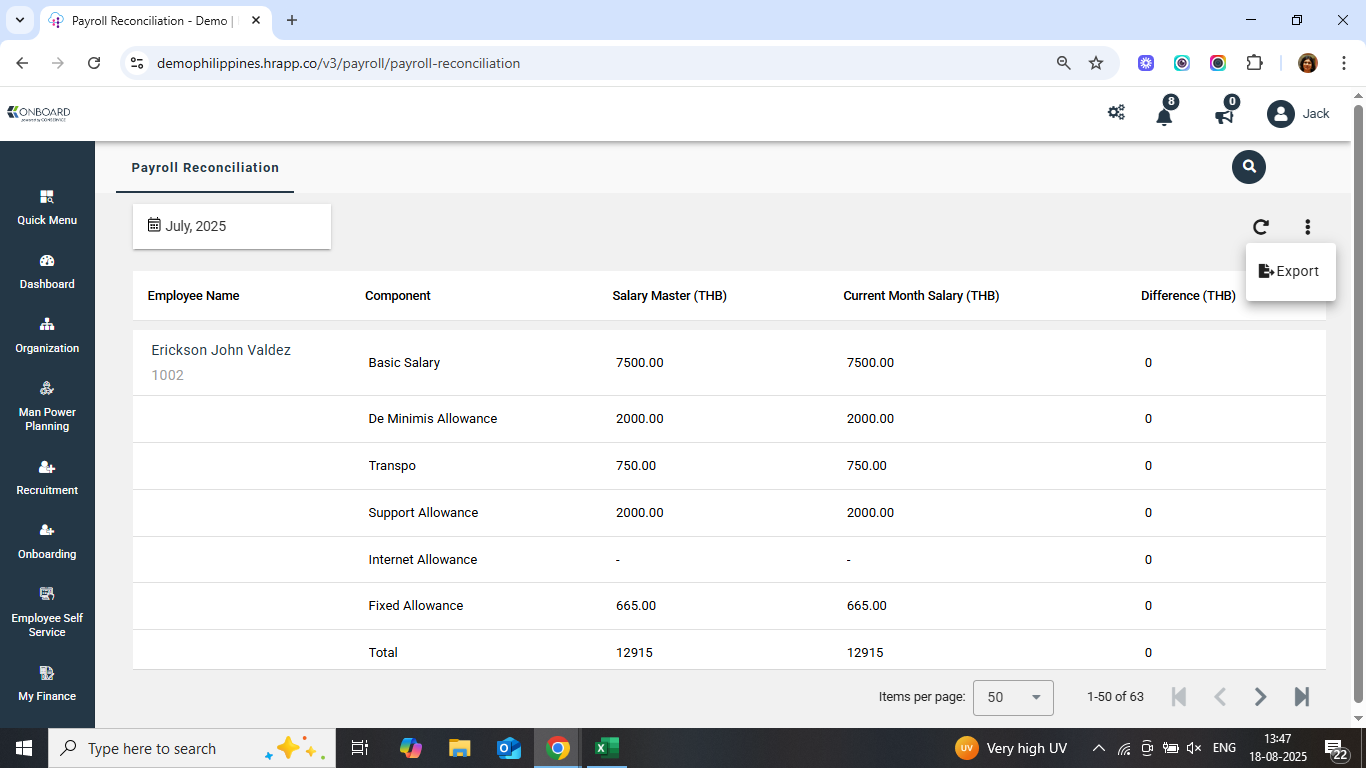 The Payroll Reconciliation feature is designed to ensure payroll accuracy by comparing employee salary components across different payroll periods. It helps HR and Finance teams validate changes, detect discrepancies, and confirm that salary disbursement is correct before finalization.