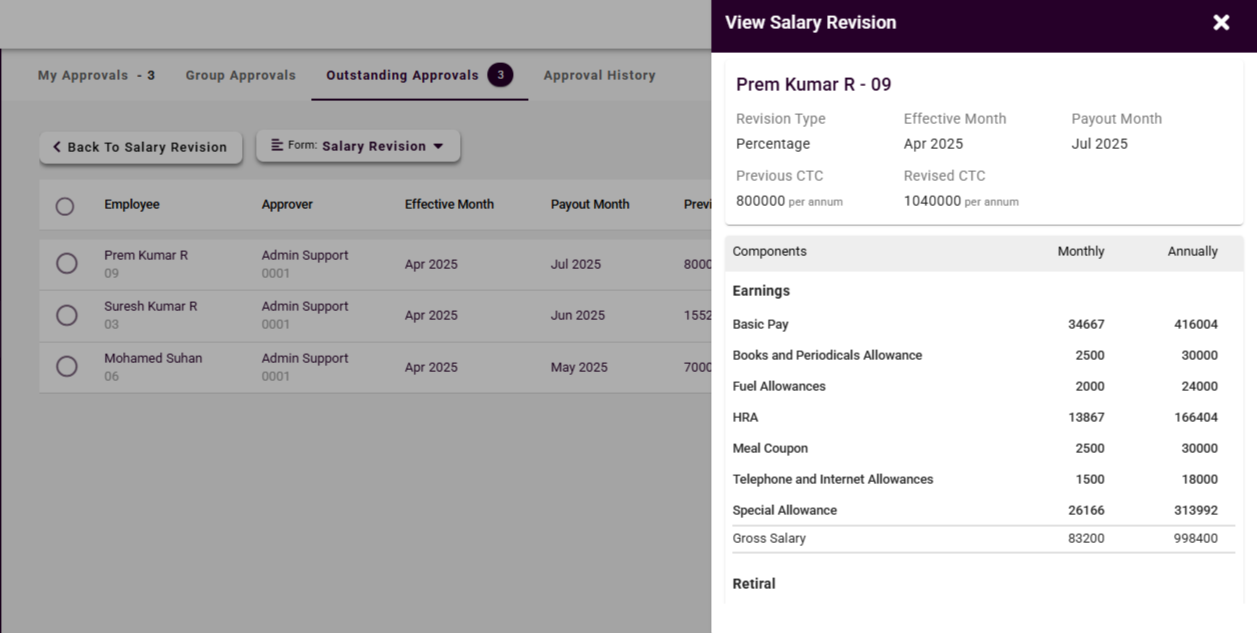 All salary revision changes go through an approval process to ensure error-free payroll for employees.