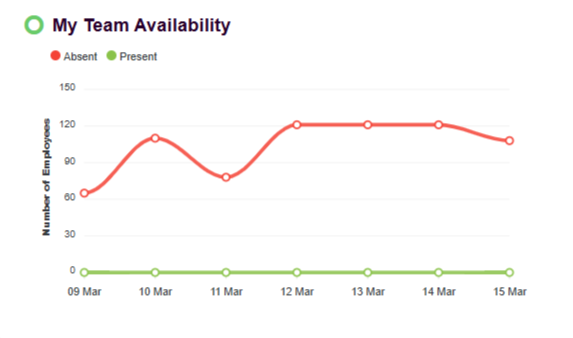 This section provides a graphical representation of team members' attendance trends for a week.This weekly overview helps managers analyze attendance patterns, track employee availability, and plan work schedules efficiently.It visually displays: