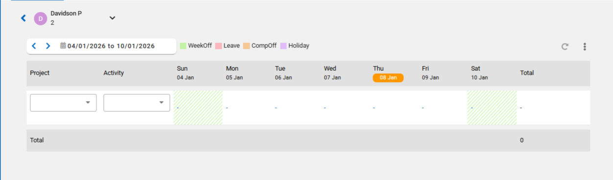 Select the Project and Activity from the dropdown. Only the projects that are associated with you will be available for selection.