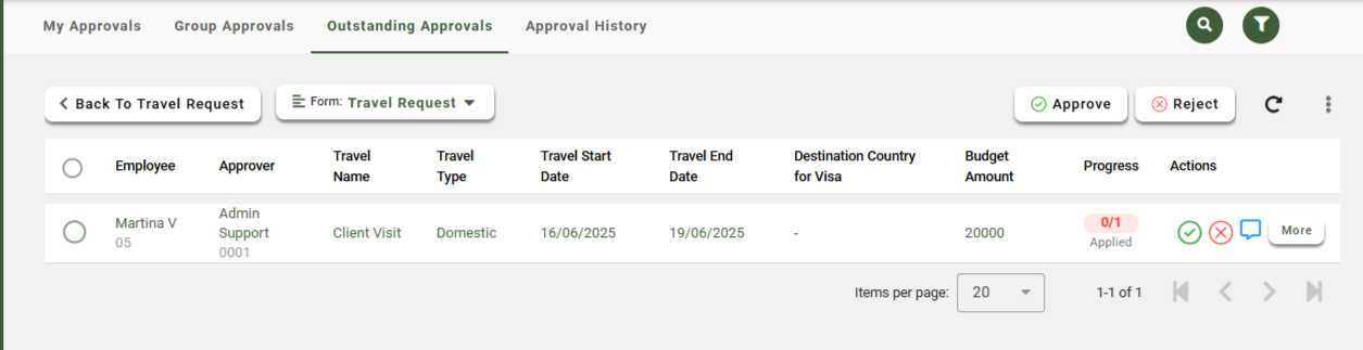 This tab is accessible only when the user is part of an approval group. When approval is assigned to a group, any member of the group can claim the task. Once claimed, the task will appear in their My Approval tab, and they can proceed with the necessary actions. If someone from the group wishes to disclaim the task, they can reassign it to another member of the group, allowing for seamless delegation and approval.