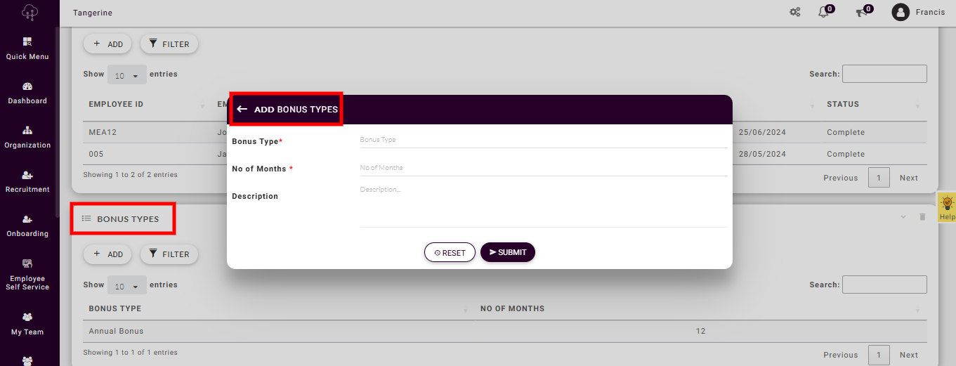 In addition to the Allowance-Restricted Bonus, users can create a Bonus Type within the Bonus module and release the bonus for a specific month to the employees