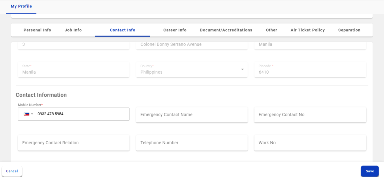Fig: My Profile-Contact Info-Emergency Contact