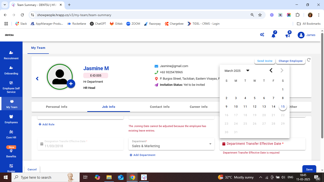 - Similarly, you can modify any employee details as needed. When updating Job Info, such as changing the Manager or other job-related details, you must provide an Effective Date for the changes to take effect.